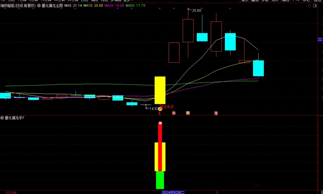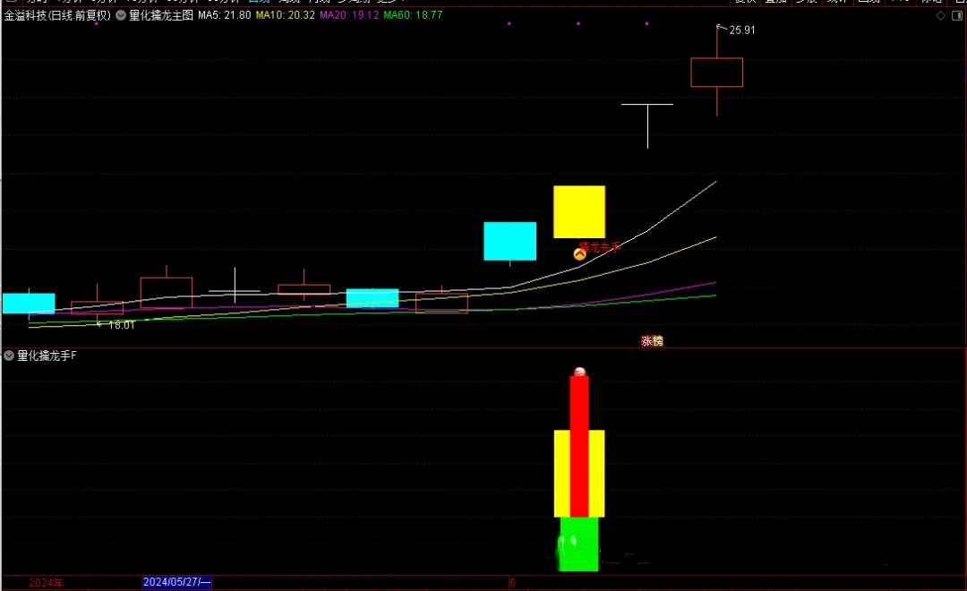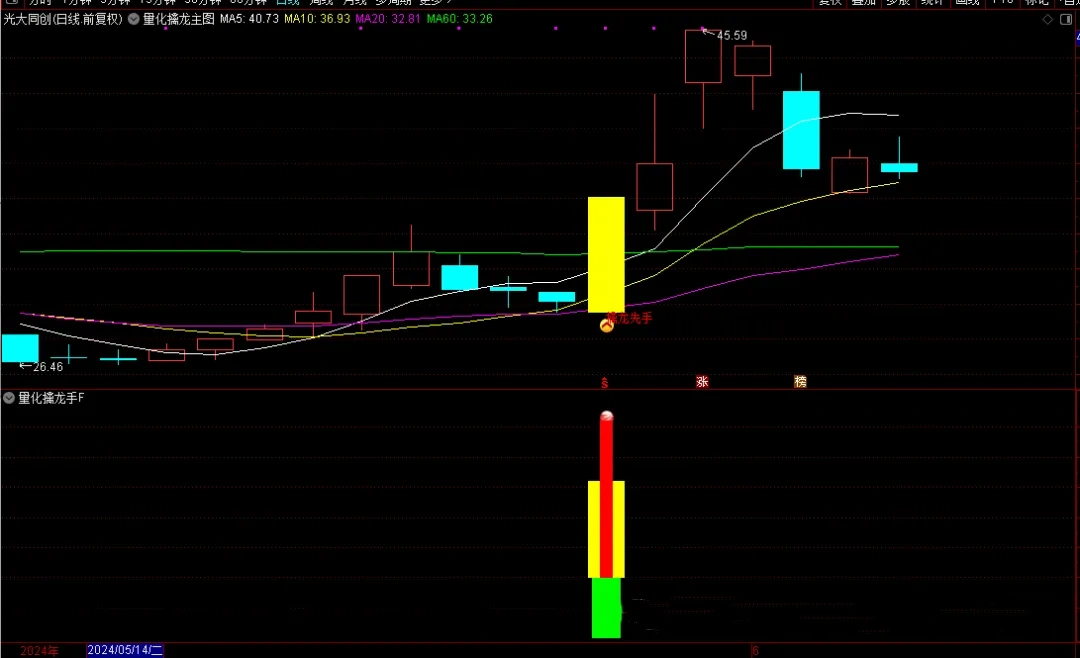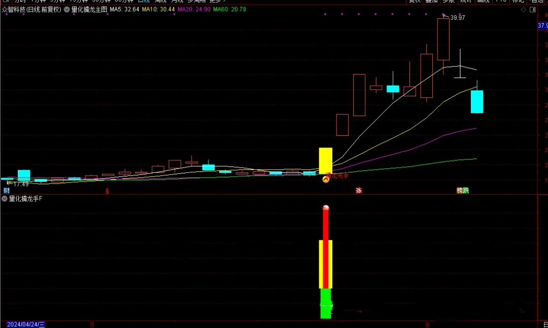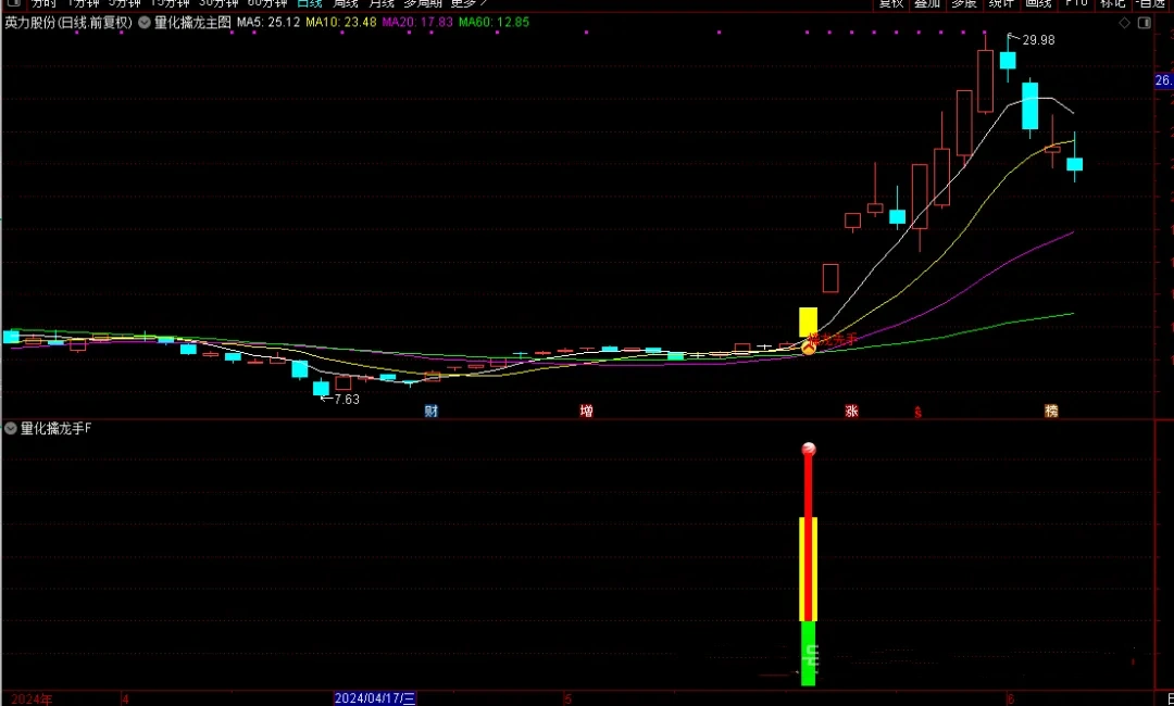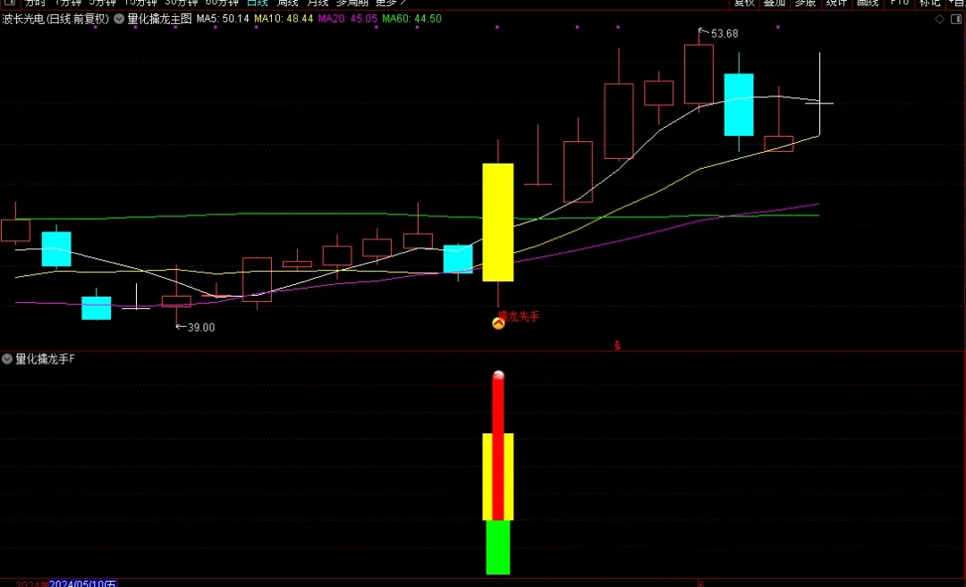 “量化擒龙手”是一套专为擅长盯盘并捕捉涨停板的投资者设计的量化策略。它结合了主图、副图和选股指标,能够在盘中实时预警可能的涨停股票,为投资者提供先机。本策略无未来函数,信号适中,但请注意,任何投资策略都不能保证100%的成功率,因此投资者在使用时需结合自身的盘感和市场环境进行分析。