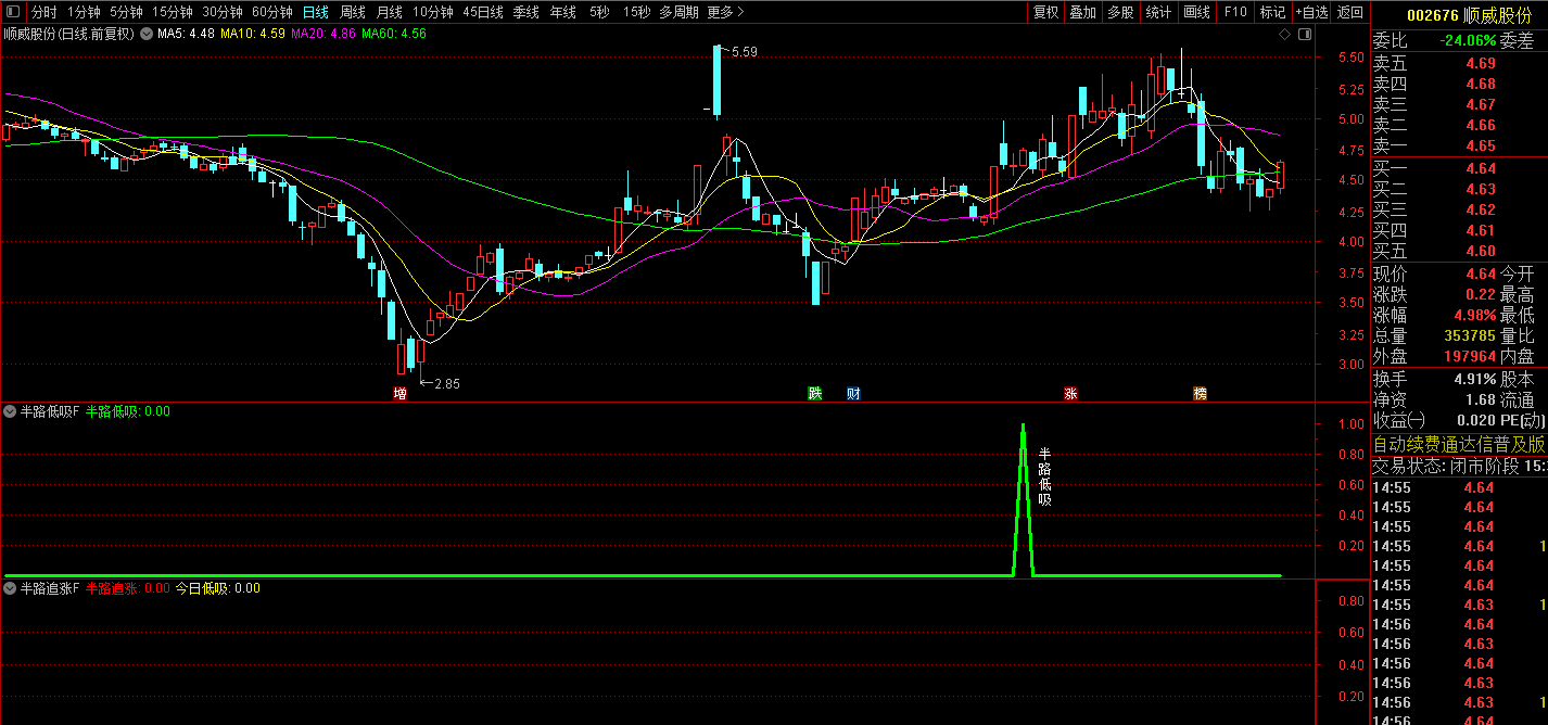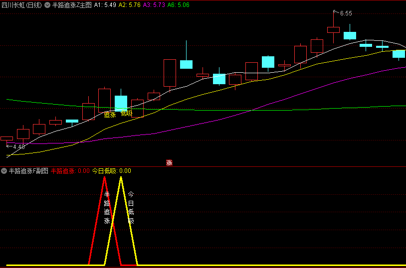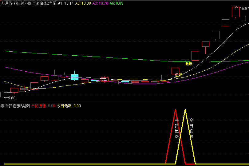 次日低吸信号:在发出半路追涨信号后,若次日股票出现回调或低开等情况,指标可能会发出次日低吸信号。对于稳健的投资者,这是一个较好的入场时机,可以在次日盘中寻找合适的低吸点进行买入。