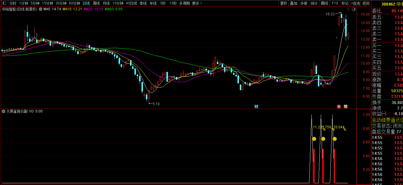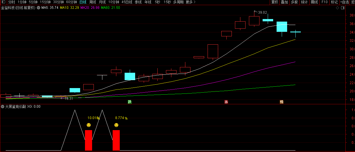 统计指标评测一个交易日无论涨跌平仓或者次日最高价平仓的条件,回测近期一年的胜率是89%,至于真有那么牛有待继续观察。