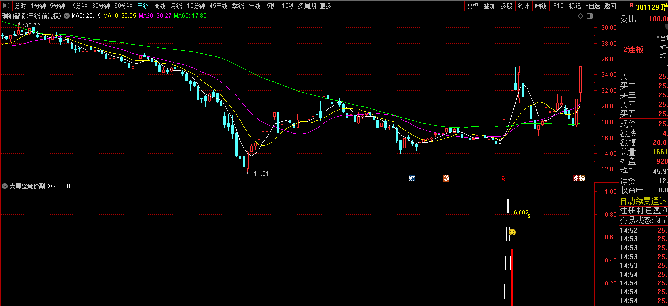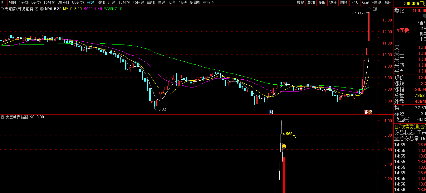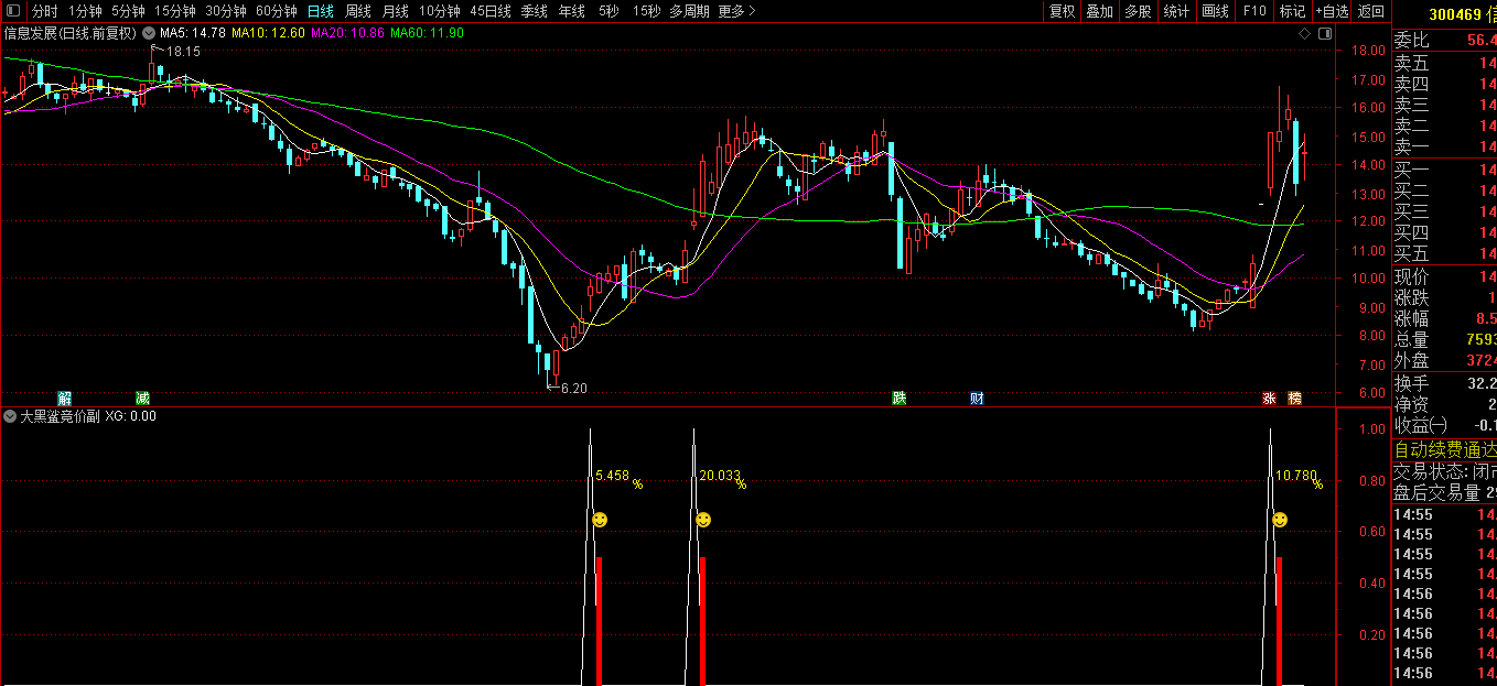 【大黑鲨竞价副选指标】是用户推荐的所以就弄来了,指标包括副选两个公式,因为是竞价指标所以还是建议用电脑端使用,毕竟这不是开玩笑的,信号当天回测不变,信号不多,信号仅供参考!