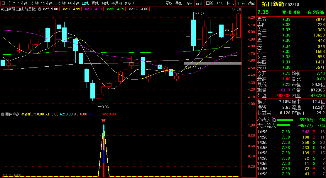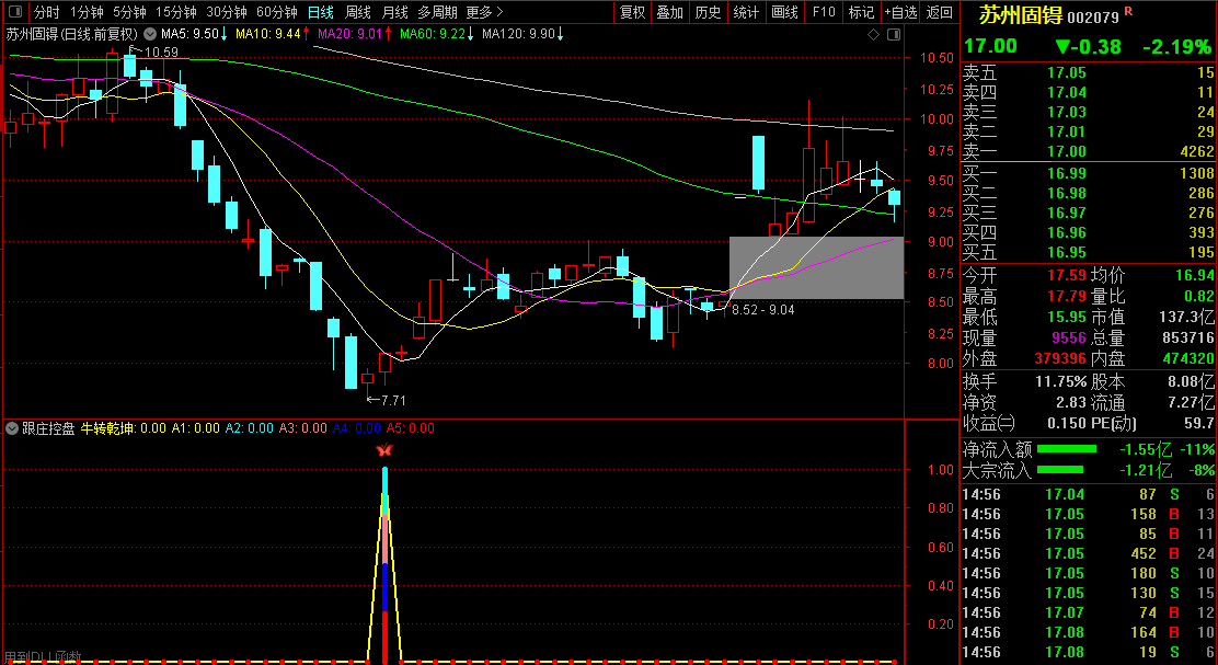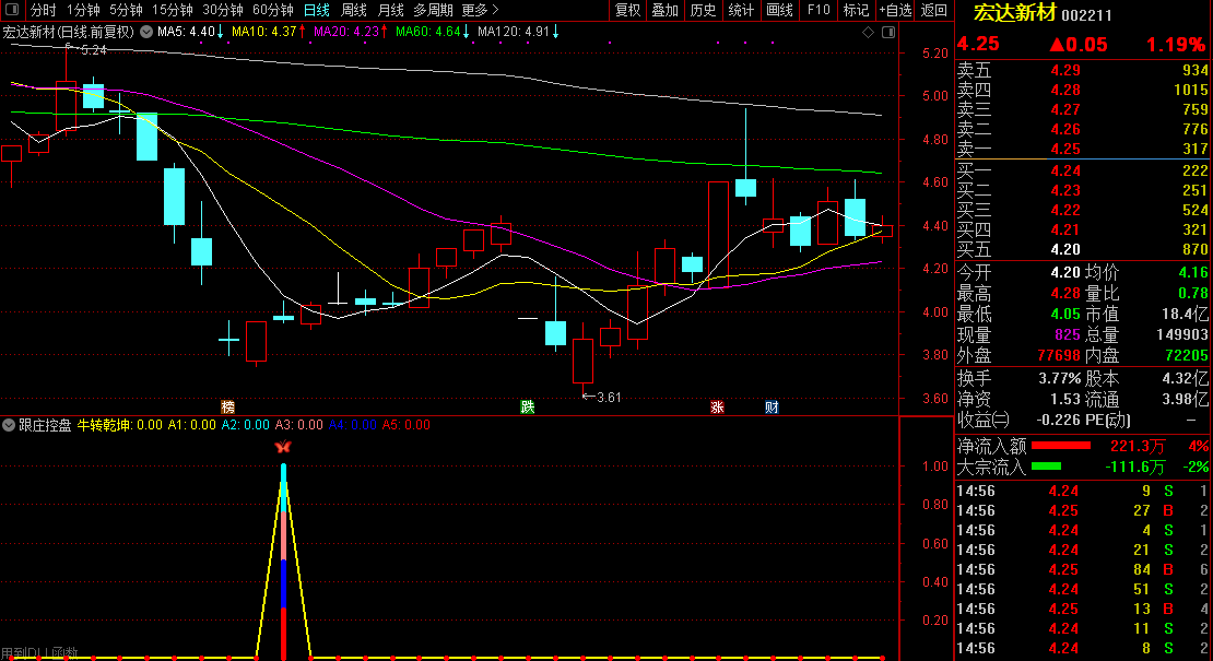 所有公布的金钻指标都得到了很多朋友的关注和支持,收到了很多好的建议和方法。再次感谢。下面给大家带来一款兼顾短线中线操作类型的指标——【跟庄控盘】。