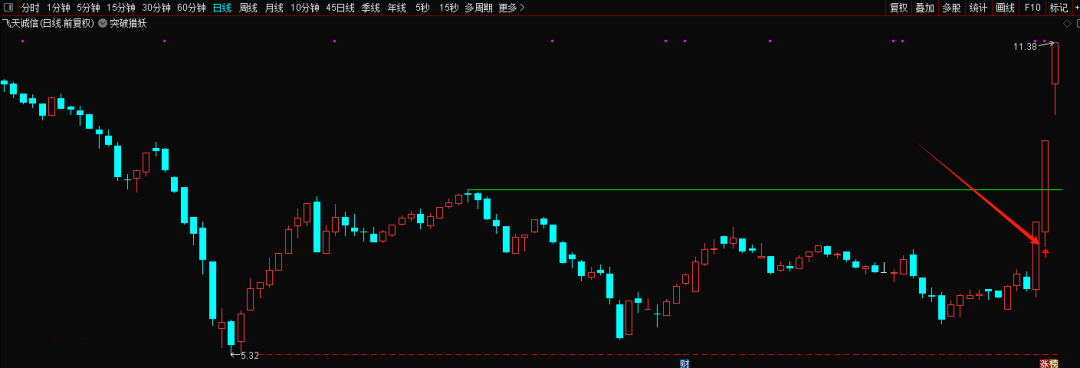 幅图中的垂直的红线是买进信号,做出来的选股指标也是选出红色垂线位置的。