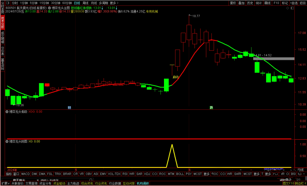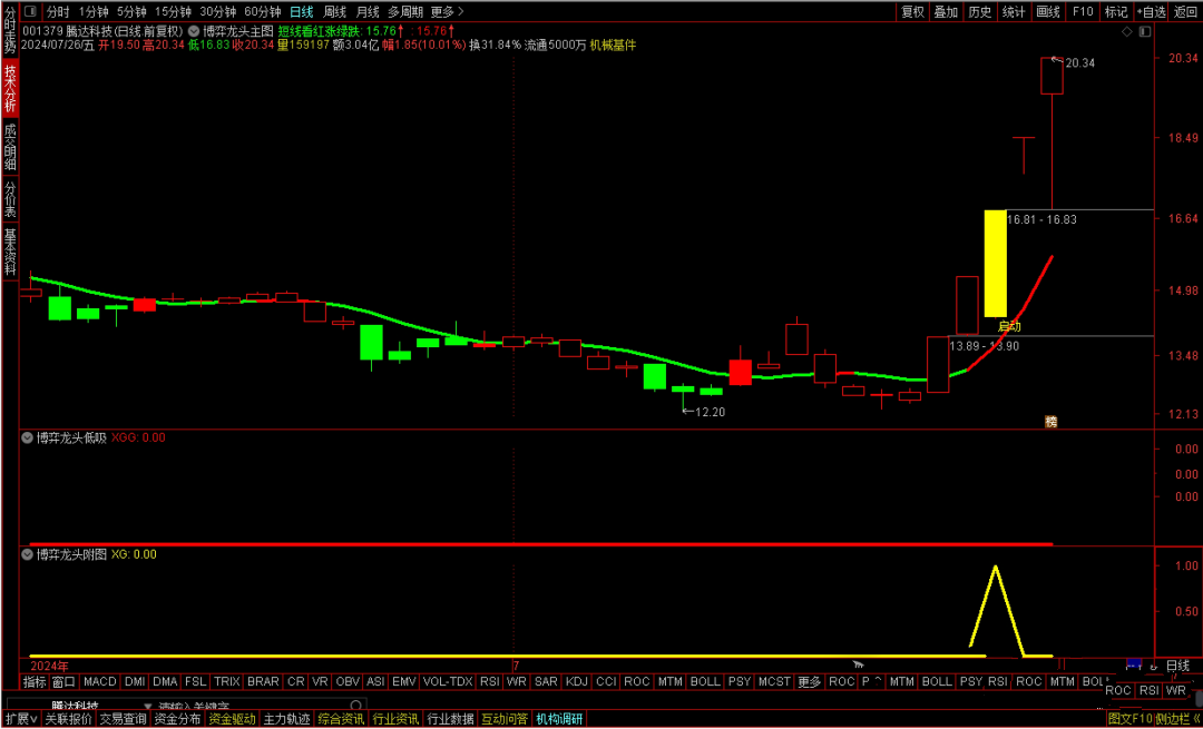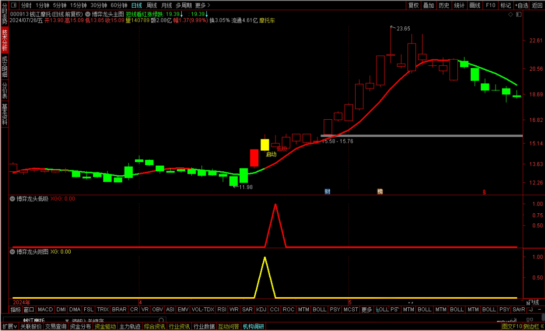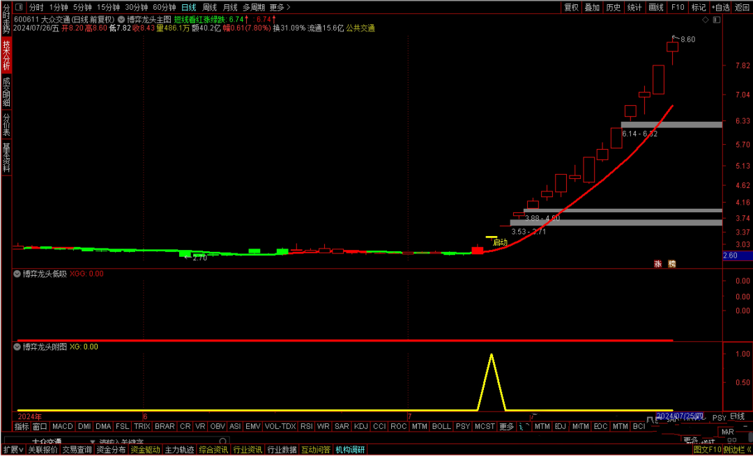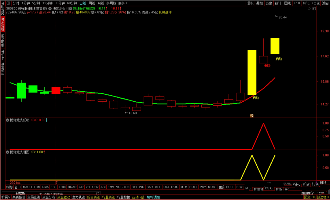 值得注意的是,本策略中的“博弈龙头启动信号”,虽能提前预警,但要求用户自行甄别个股的龙头潜力。真正的龙头股,往往伴随着市场的高度关注与热烈讨论,这是非量化指标所能直接捕捉的。因此,在依据信号操作前,务必结合市场热点、资金流向及个股基本面等多维度分析,确保所选标的确为市场公认的龙头候选。总之,本策略旨在为投资者提供一套高效、精准的龙头低吸方案,但投资决策仍需结合个人判断与市场实际情况。