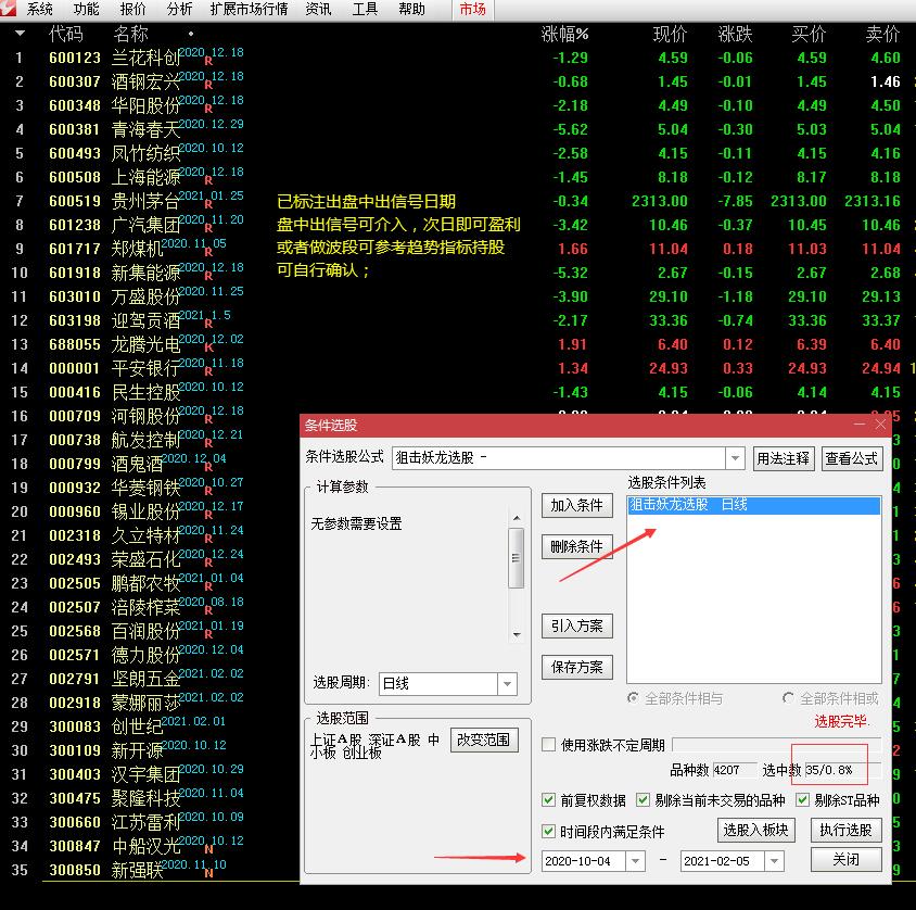 选股指标出信号不能以固定几个点出信号来作为依据,因为会有很多票冲高回落的假象。