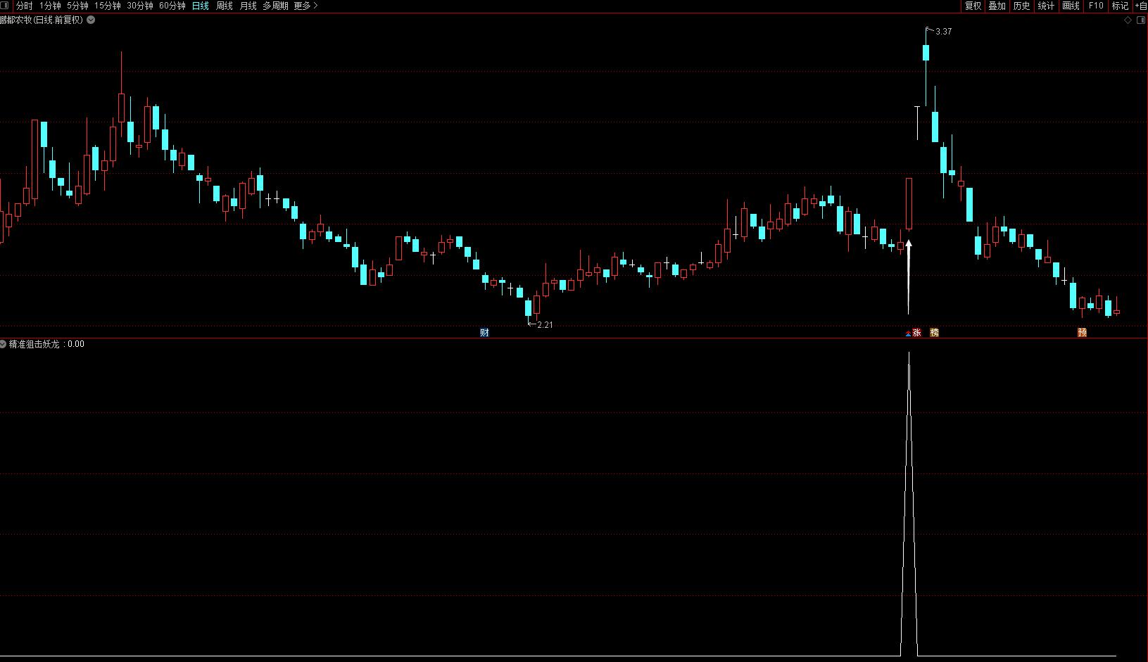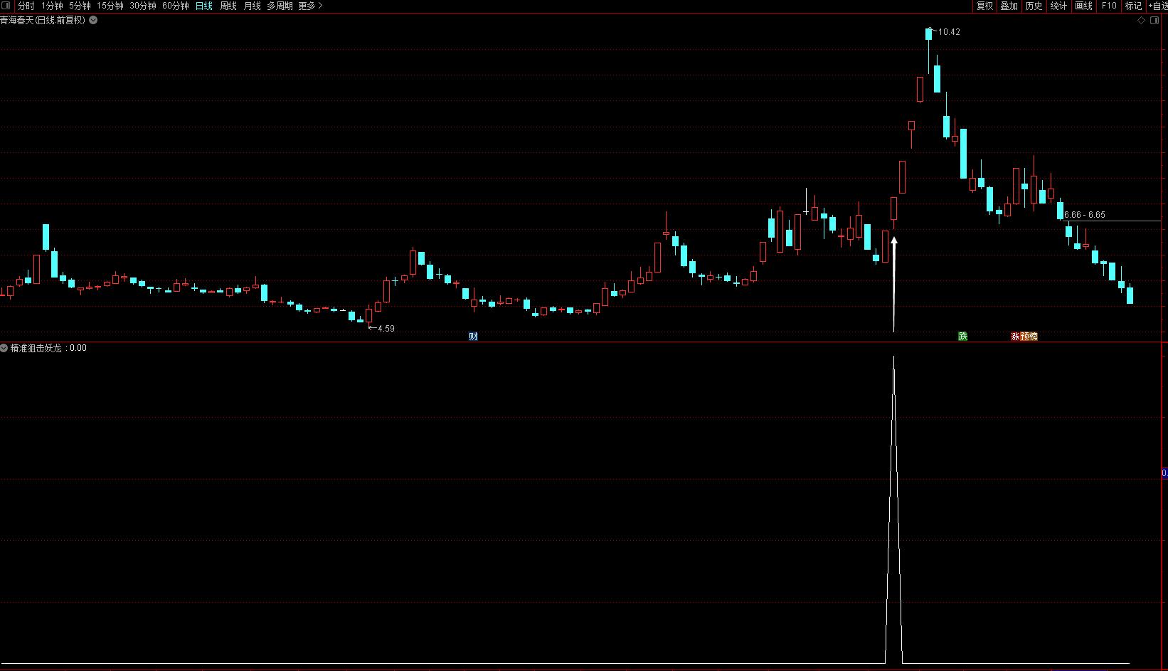4、此指标盘中预警或盘中介入即可,大部分出信号当天就能涨停或大涨,玩超短的次日高开或冲高止盈就可以;做波段的可根据顶底指标持股操作即可。
