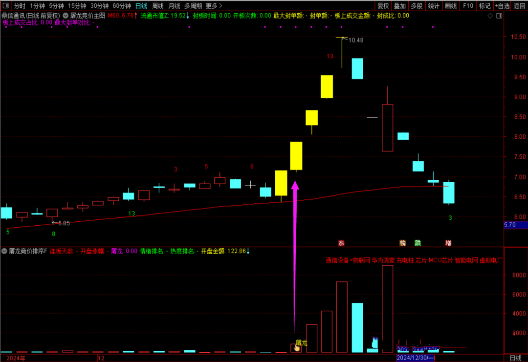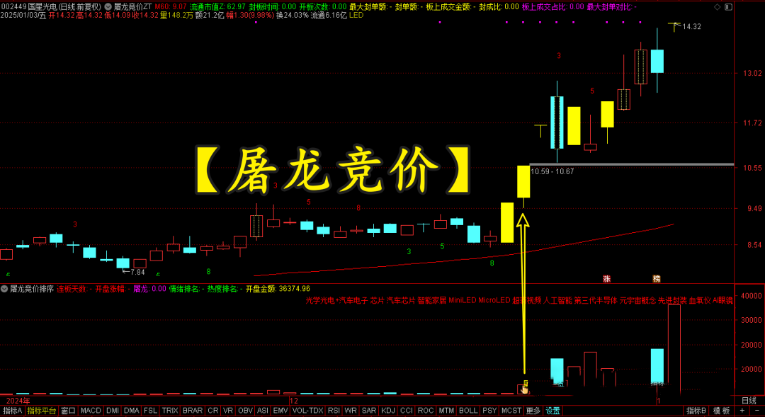 (2):金手指和“屠龙”字样,就是集合竞价出来的信号;