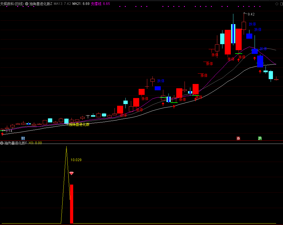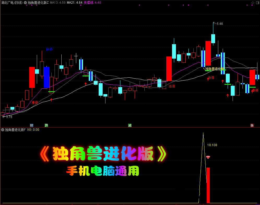 【独角兽进化版】指标包含主/副/选三个指标公式,手机与电脑均可通用,信号仅作参考之用。