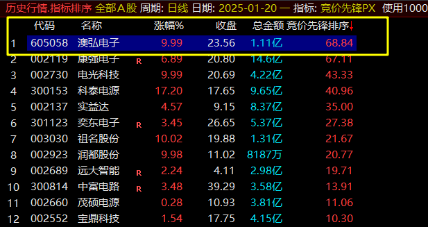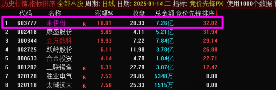 【竞价先锋】指标专注集合竞价,洞悉股票人气与主力态度。该指标通过排序选股,精选当日涨停潜力股。为精准捕捉强势股、规避风险,电脑排序使用。