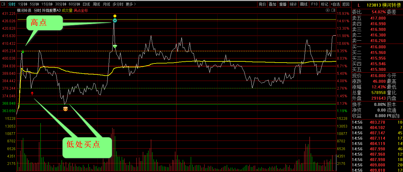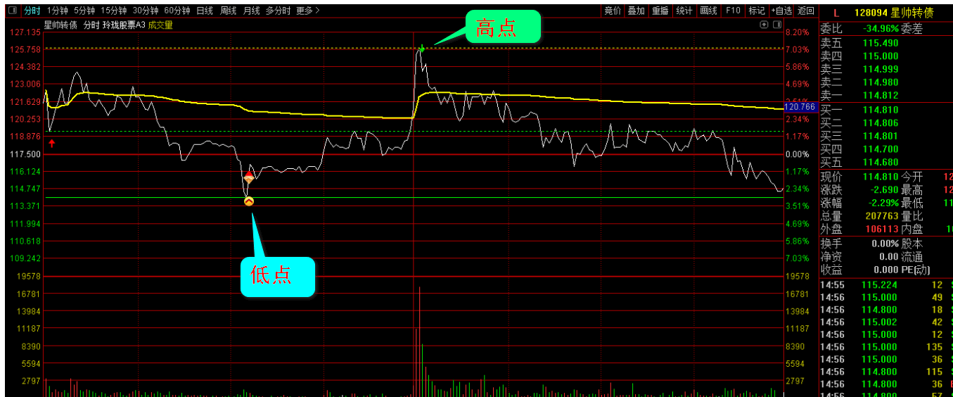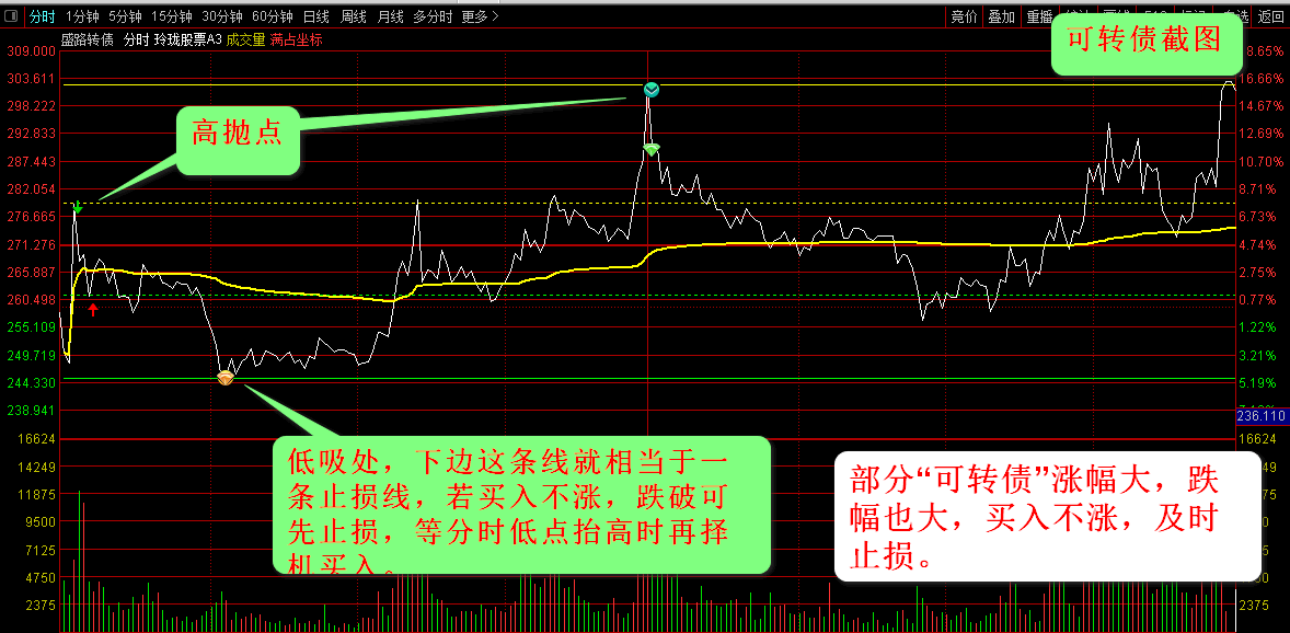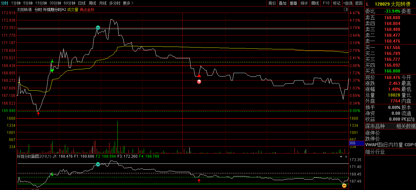 一:1:由创业板的振幅变大了,此外,越来越多的人对可转债感兴趣。这两个品种的振幅比其他的大,所以我对原来的玲珑分时做了一点改动,去掉了主图上的开盘四线,主图也不压缩了。可以看可转债了。