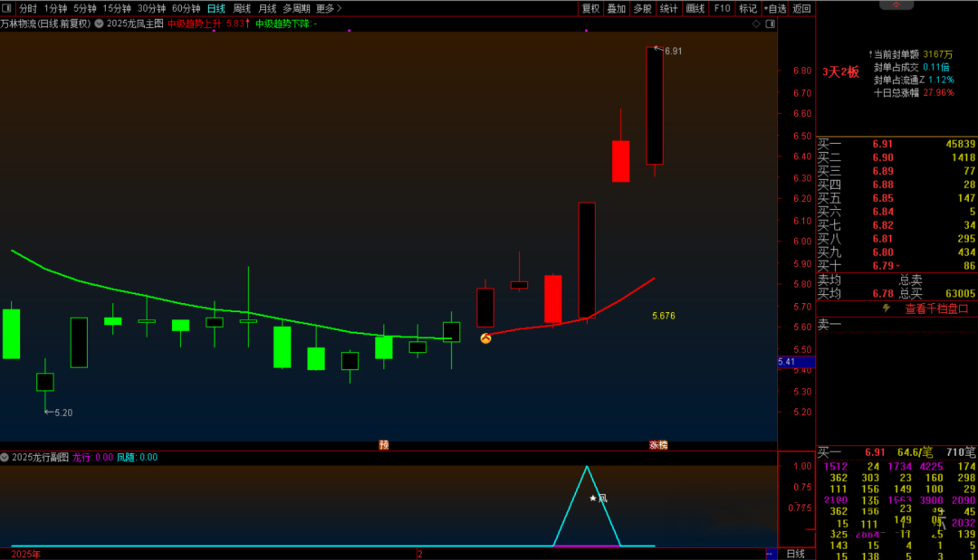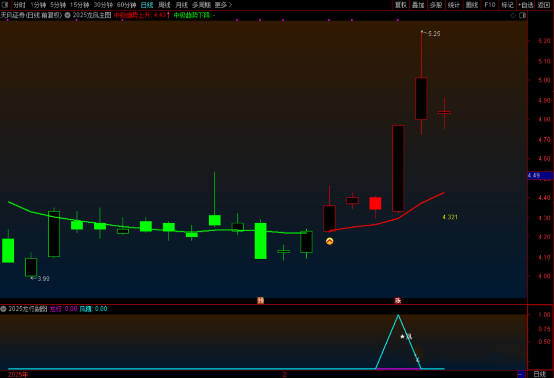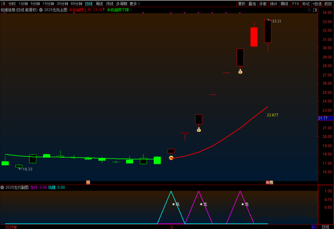 2025龙行凤随主图、副图,配合竞价排序 ,可以随时查看个股的趋势位置,有利于大家实战操盘!
