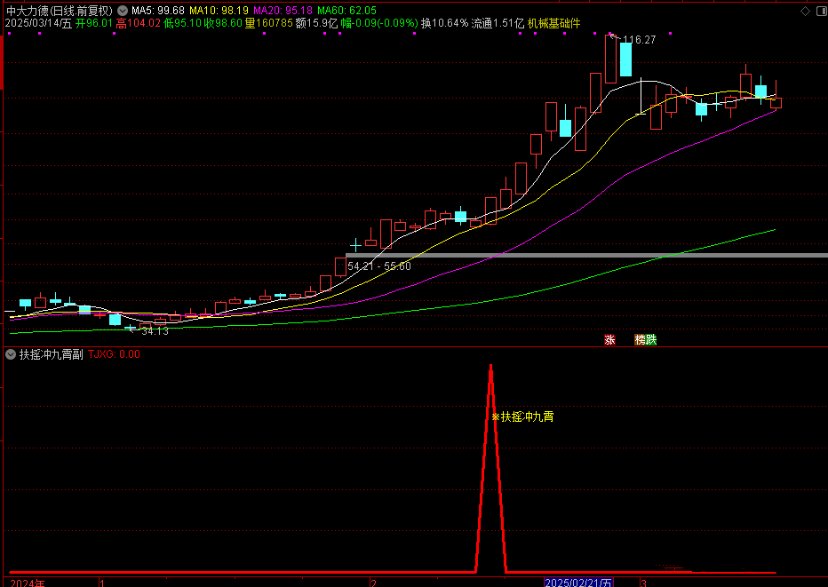 【扶摇冲九霄】指标包含副选两个公式指标,为强势股的空中蓄力信号,信号不漂移,公式结合了均线、价格、成交量、板块等多重条件,帮助筛选出潜在的强势股。手机电脑通达信通用,信号仅供参考.