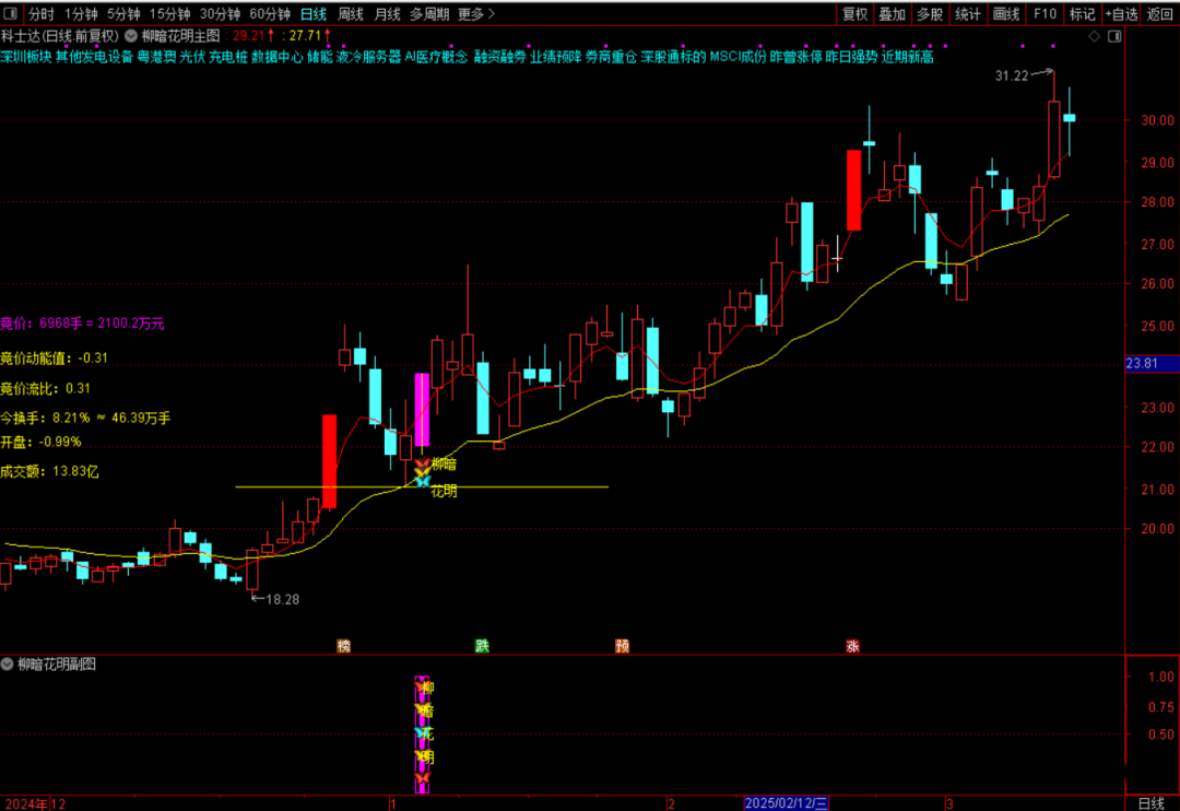 3、尽量选前期有温和放量,涨停爆量,回调缩量的股票,结合市场热点非常重要,尽量选择在风口上的个股操作。