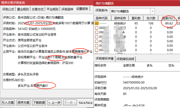3、5天吃面评测,意思就是拿5天,依然到不了进场当天位置的情况,我们用目标周期选择5,到1个点就出,1个点也就是刚好可以回到进场位置的,因为我们还有手续费的成本,有7%的情况,最近三个月只有7个票是完全失败: