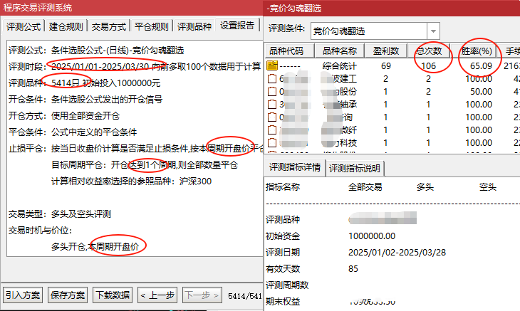 1、按照开盘进,次日开盘出,最近三个月出票106个,平均一天两个,出票均匀,当然有时候会不出票,那就不动,回测数据看,不出票的时候,恰好躲过了普跌风险,比如3月20、25和26这三天,没有信号,正好规避了风险,开盘进次日开盘出胜率65%,也就是说,有65%的情况,次日一开盘都是高于当天成本的: