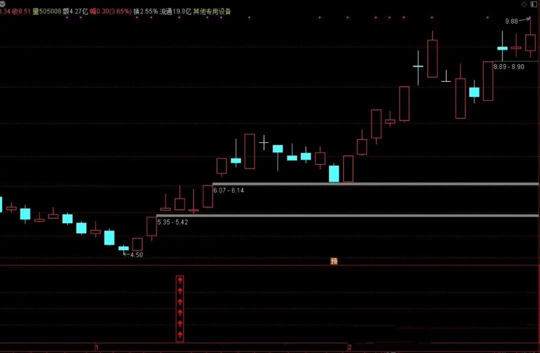 副图显示的竖向排列的红色箭头就是进场信号;