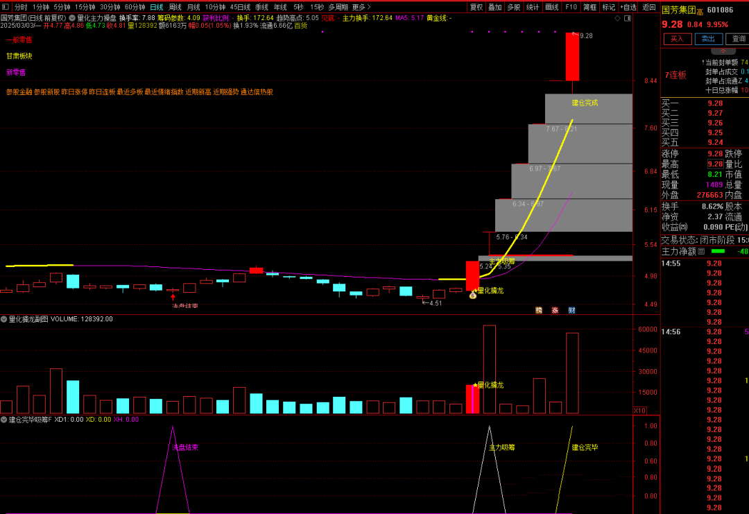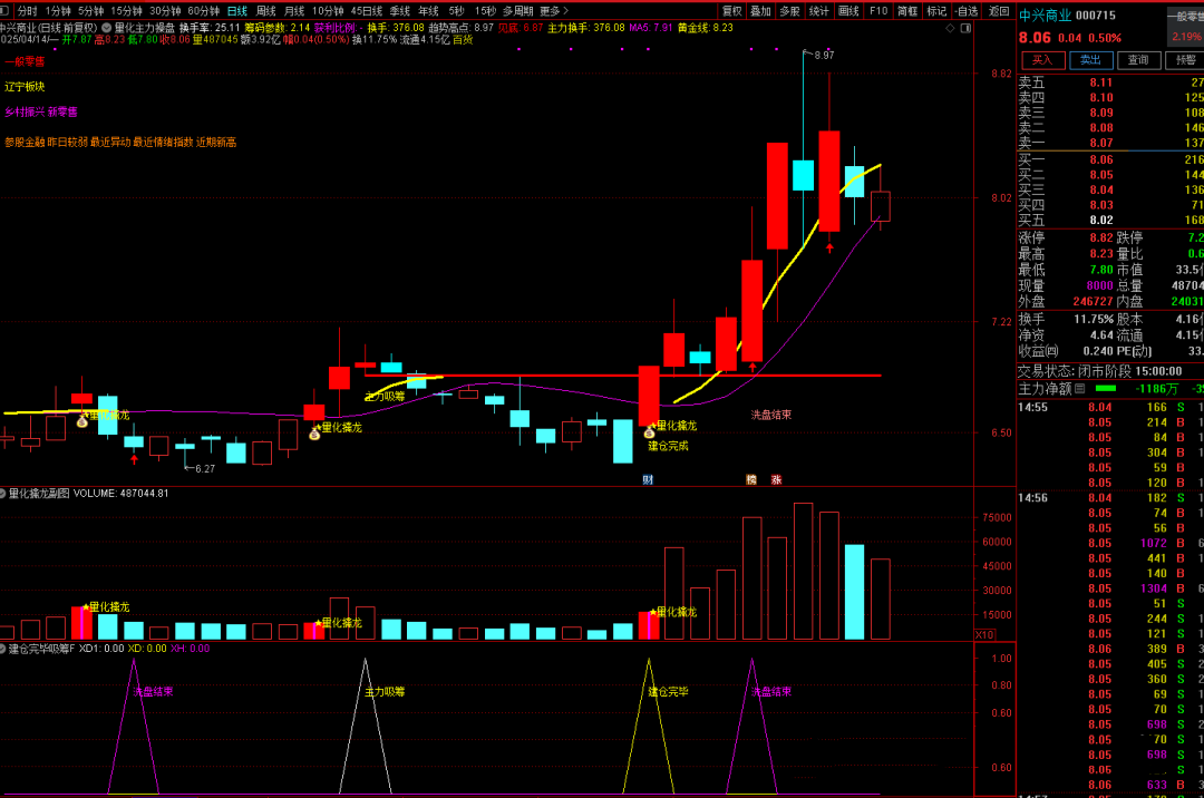2、建仓完毕选股:基于股价突破重要阻力位、成交量持续放大、主力资金净流入等条件,选出主力建仓完毕即将拉升的股票