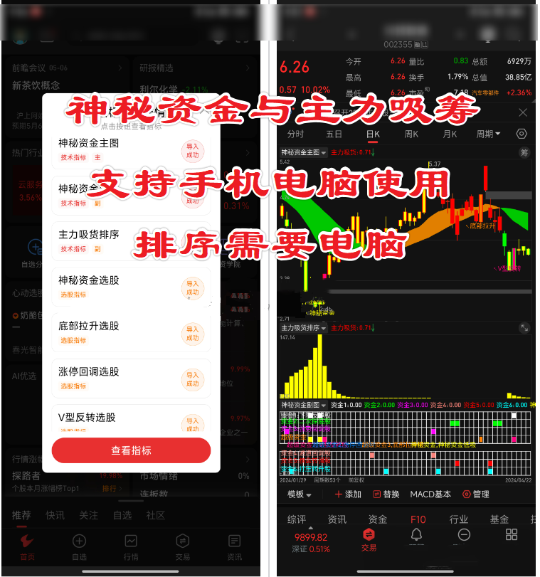 通达信“神秘资金+主力吸货排序”套装指标,其中神秘资金幅图和主力吸货排序副图二者组合是围剿涨停指标,是体现和揭秘主力资金意图及底牌的强有力工具,此指标简直是主力资金流向的透视眼。