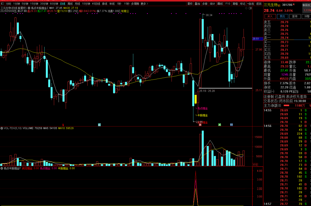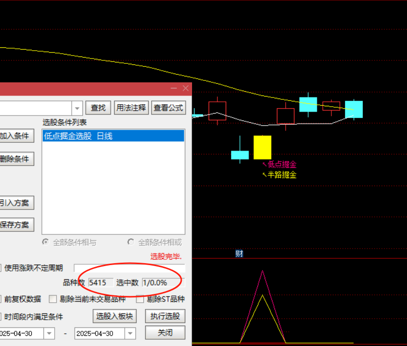 低点掘金信号(粉红色): 表示超跌反弹的买入机会,适用于稳健者,筛选超跌后缩量上涨票。需观察是否站上均线(如20日均线)以确认趋势反转,止损点可设置在信号前一日的最低价。