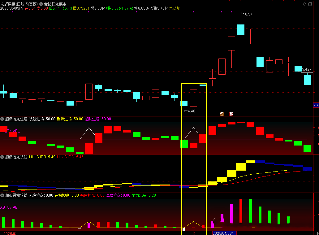 黄色持股:主图呈现黄颜色,坚定持股待涨。