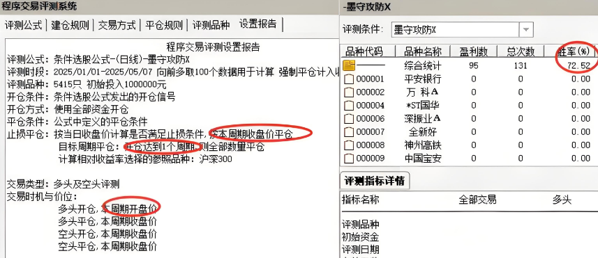 胜率表现:以开盘价进场、次日收盘价离场为评测标准,对 2025 年至今的交易信号进行统计,该策略胜率高达 72.5%。收盘价离场统计而不是次日最高价统计的胜率。