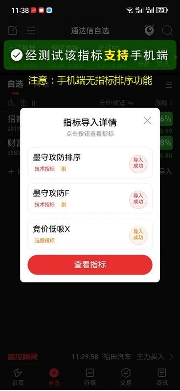 手机端:配备副图指标与选股指标。选股后若出现多个标的,可参考副图指标数字。