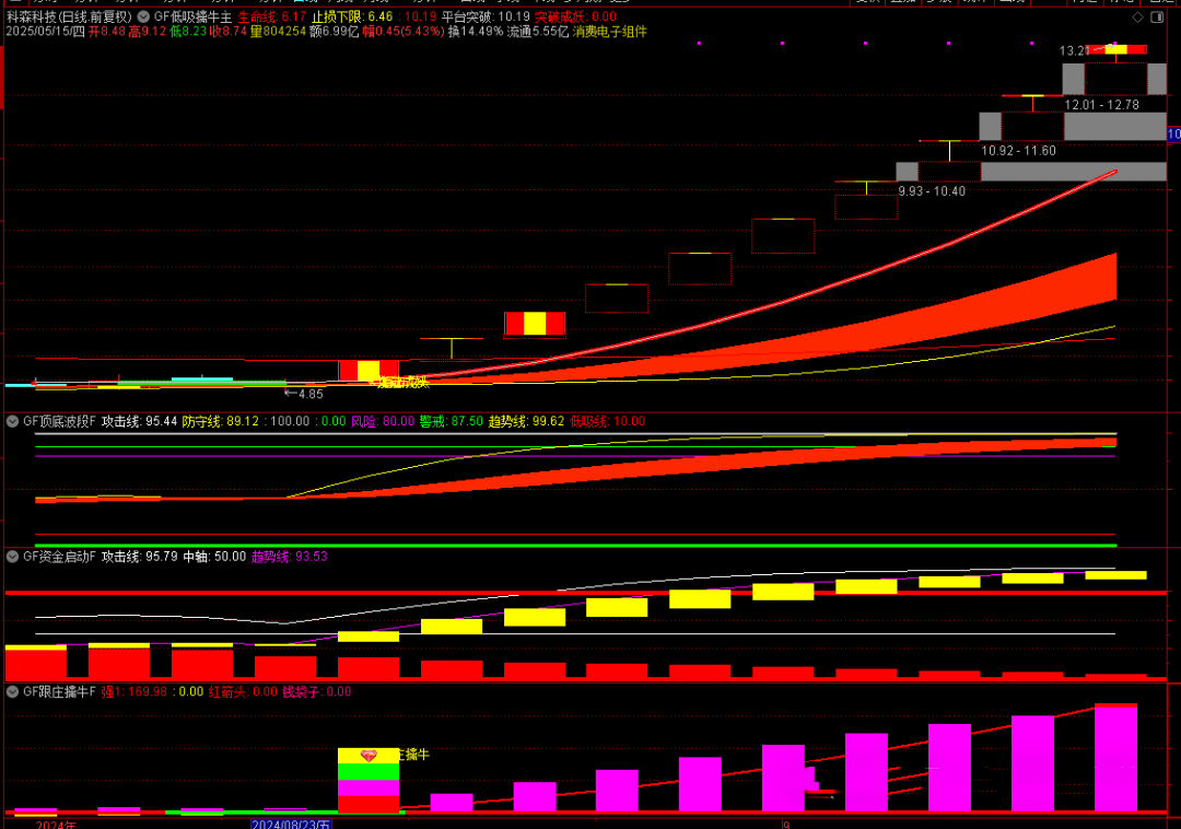 通达信【GF低吸擒牛】主副选全套指标 低吸擒牛提前埋伏牛股!手机电脑通用无未来函数验证!本套指标共1主3副10选股,14个指标,支持手机!