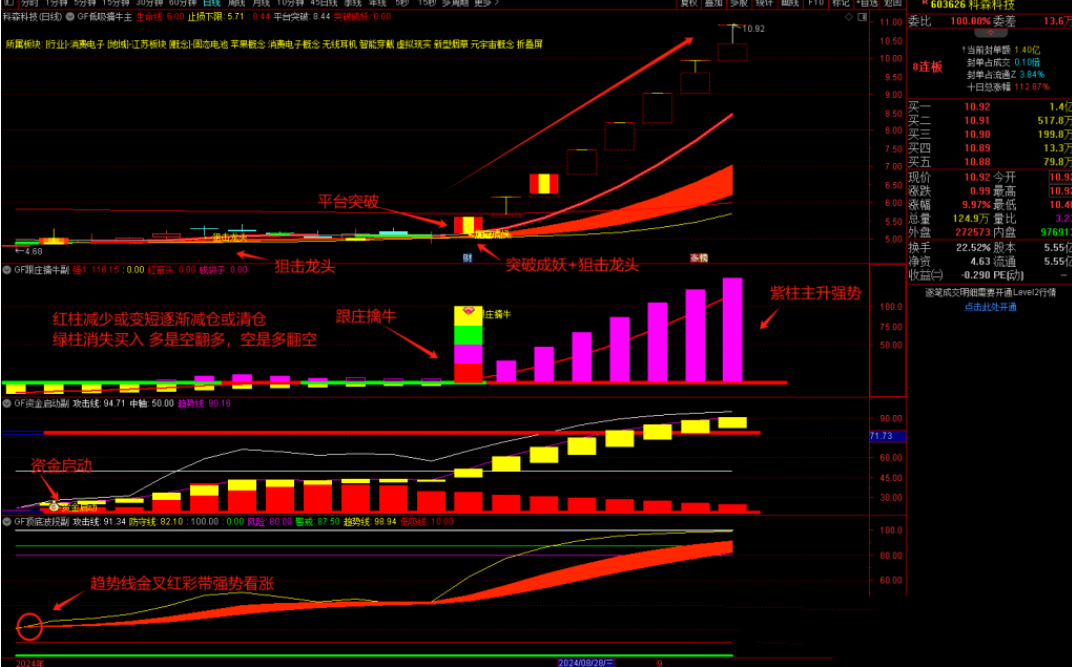 4、股价站上生命线走主升行情,易出妖,股价跌破生命线注意规避风险