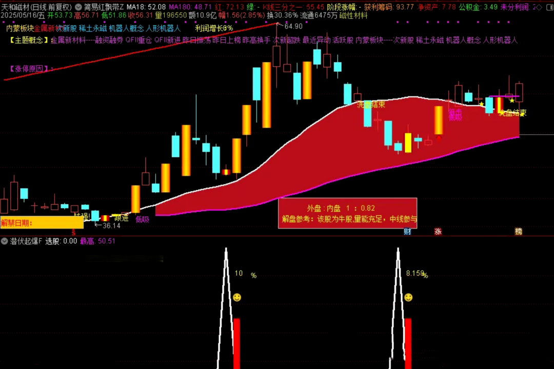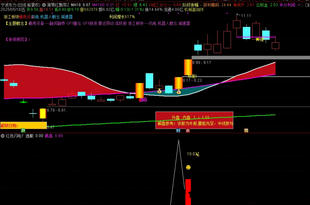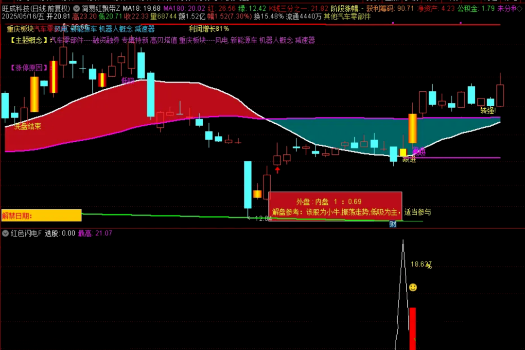 这款是客户推荐的往期专门尾盘T+1使用的高胜率指标,到现在胜率统计依然很高,信号数量适中,现把红色闪电和潜伏起爆做成一期,方便尾盘查看。