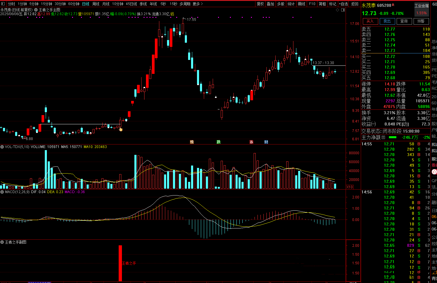 本套指标包括主/副/选3个指标,某宝组团指标。2025年为止只出了6个信号相对较少,信号位置不高,非涨停信号,但胜率超高,适合上班族使用,手机电脑通用,无未来函数