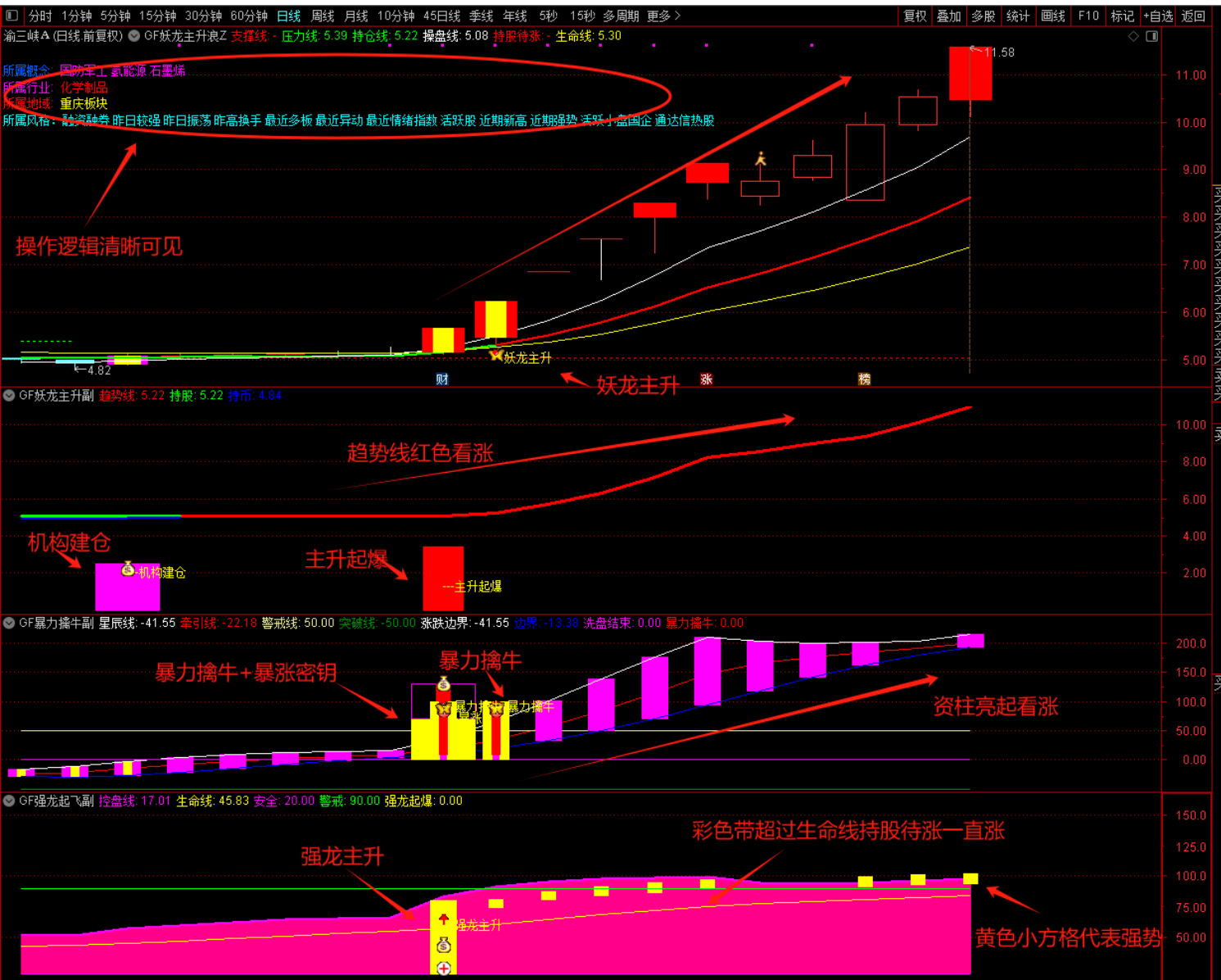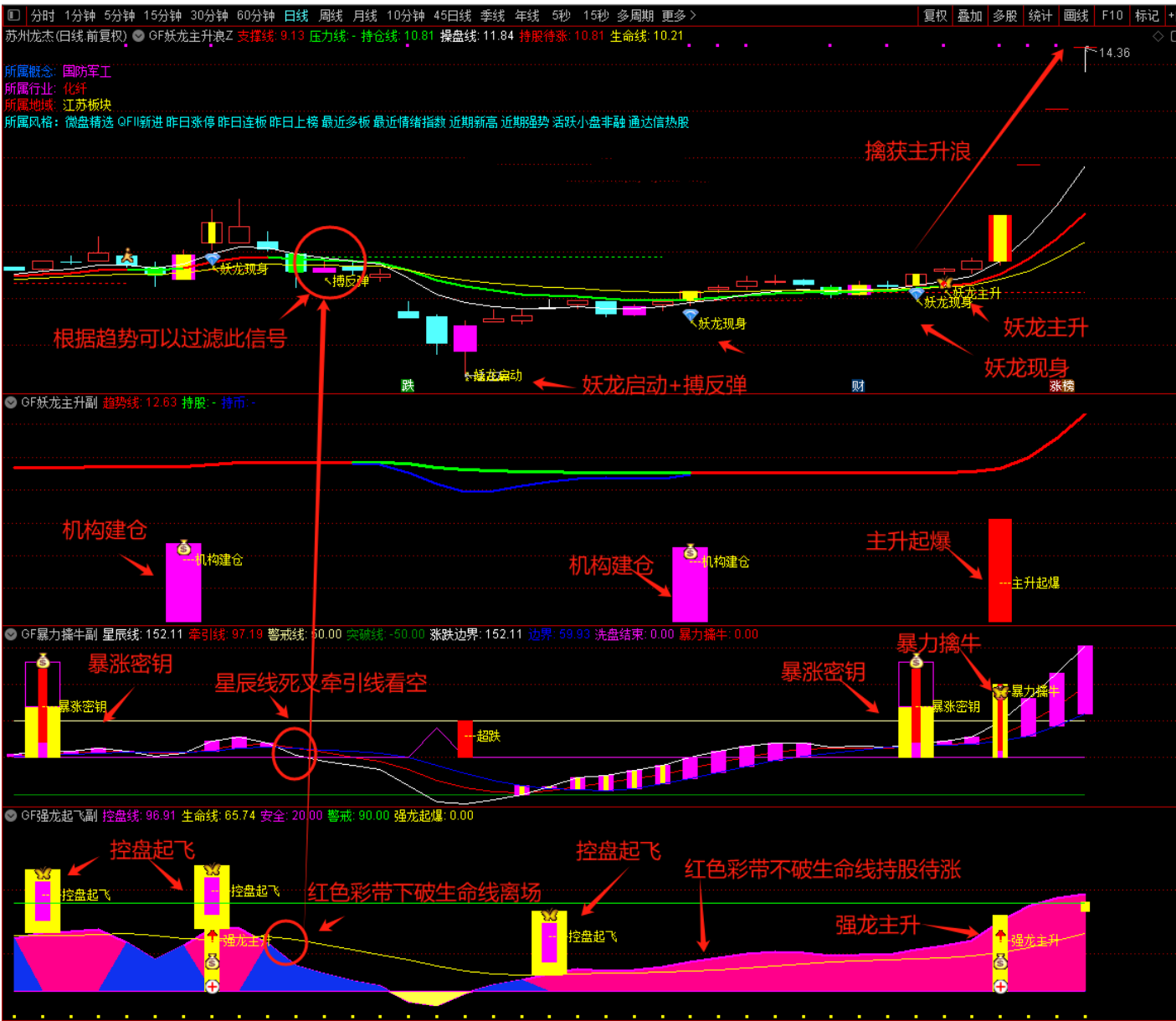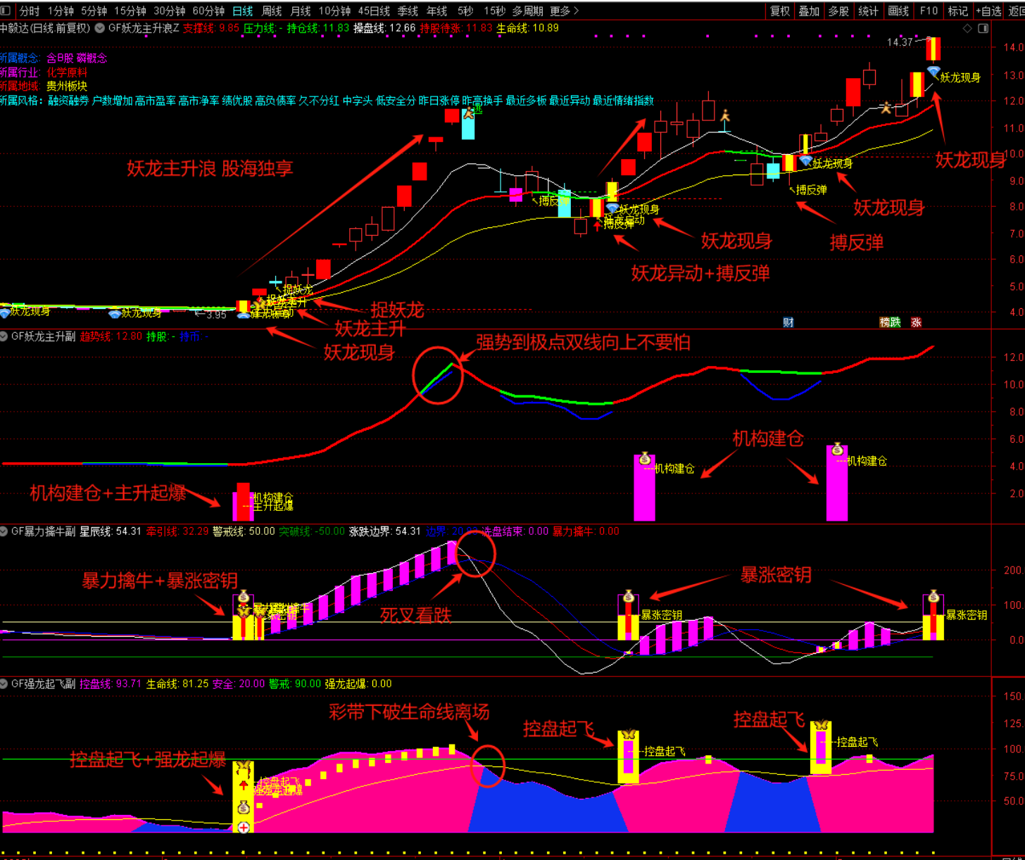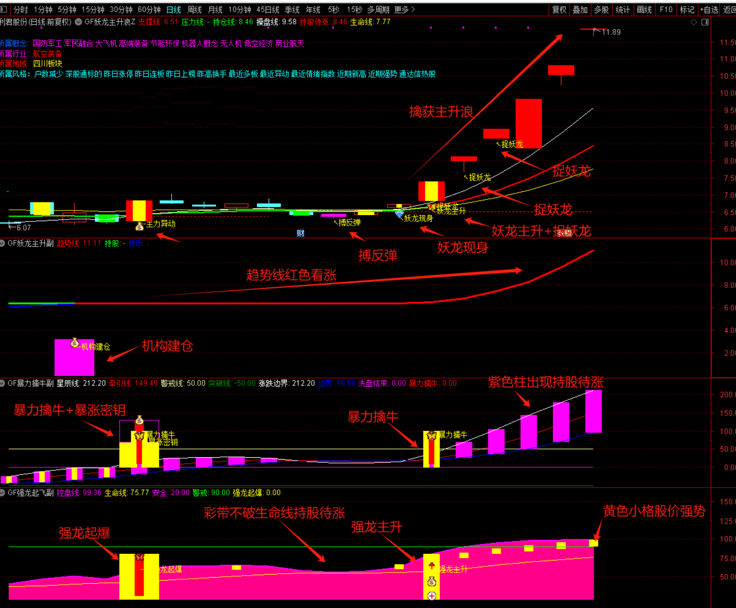 妖龙主升:主升启动信号(默认带成交量限制,需取消{AND GF_ZL}括号解除限制)