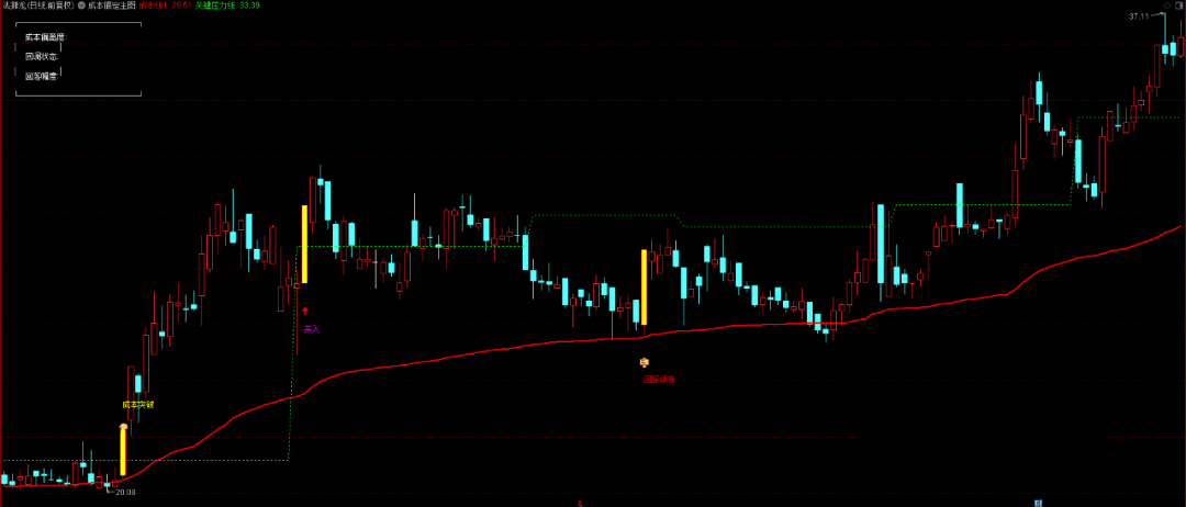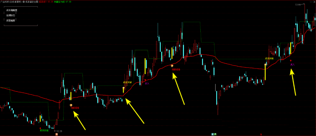 有用信号分别是成本抄底、成本突破,回踩续涨以及买入信号。