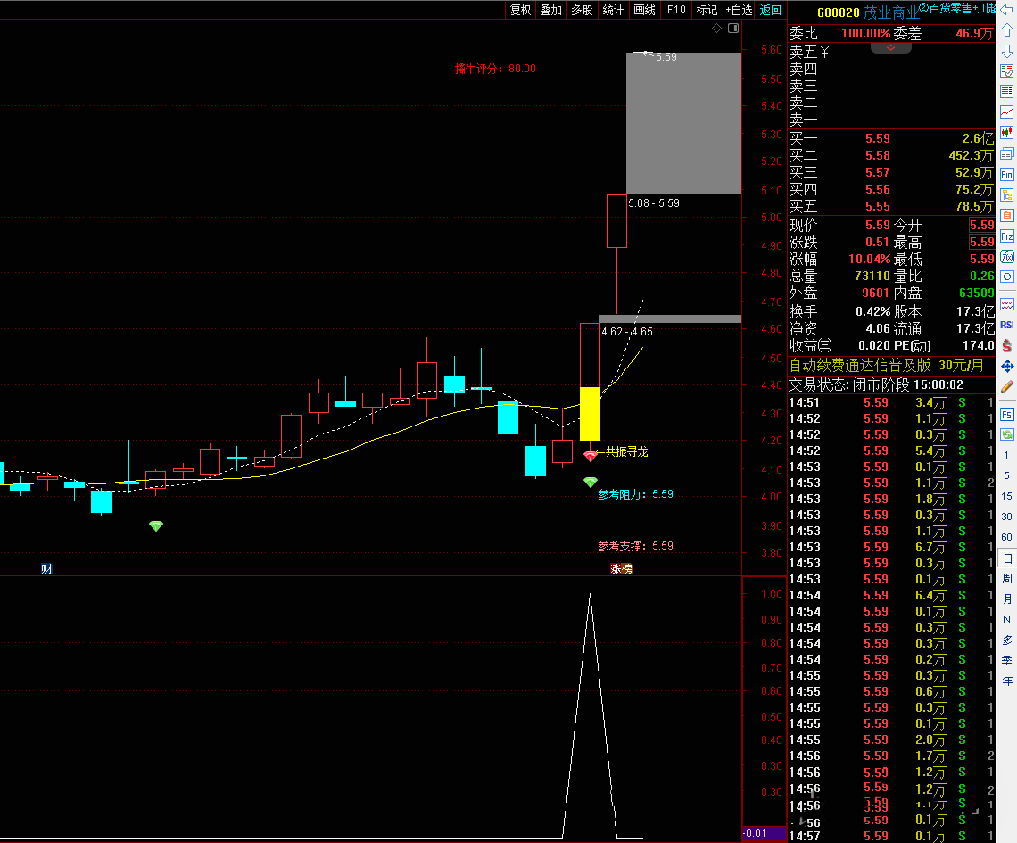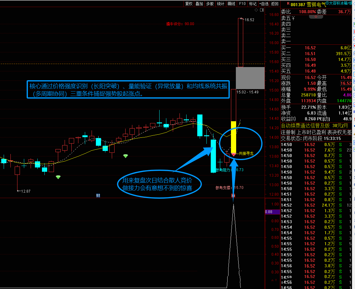 趋势延续判断指标定位:适用于主升浪启动早期的波段交易场景,典型信号出现在股价突破关键压力位且量能激增时。