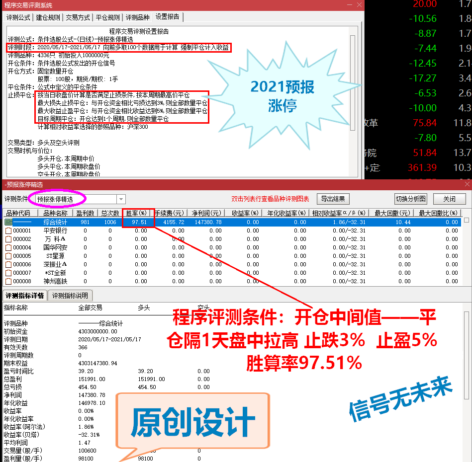 预报涨停 短线捉涨停利器 预报周期1至5个交易日,独家开发原创实战经验编写。