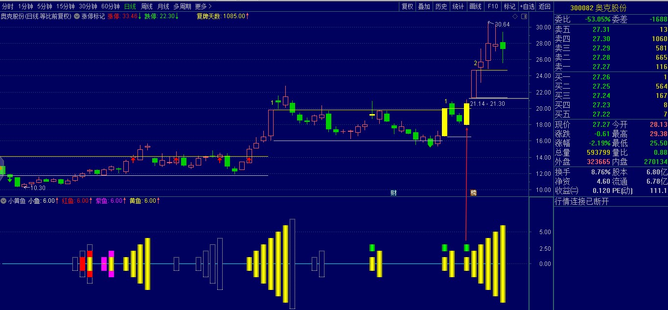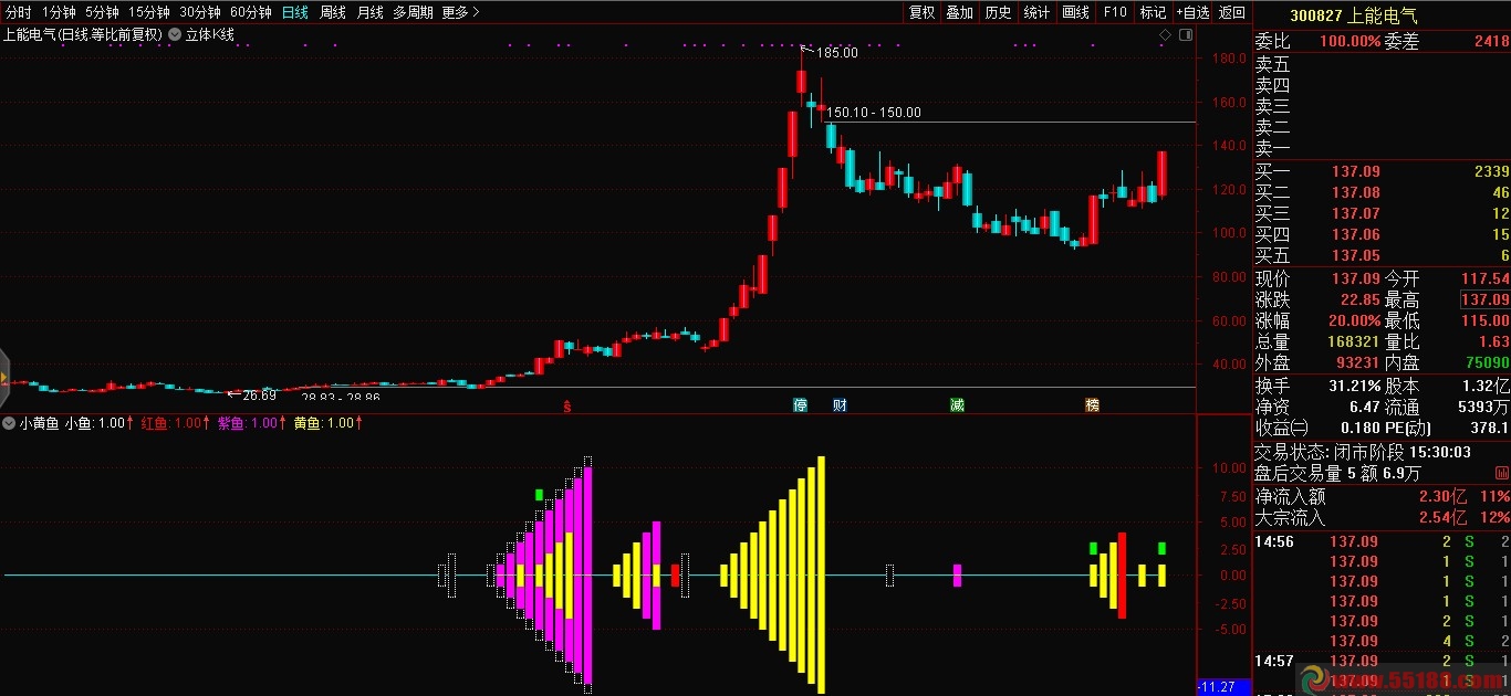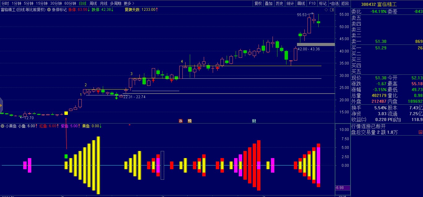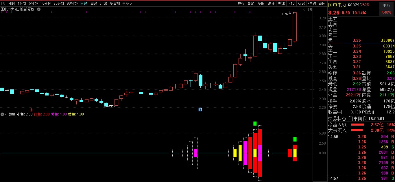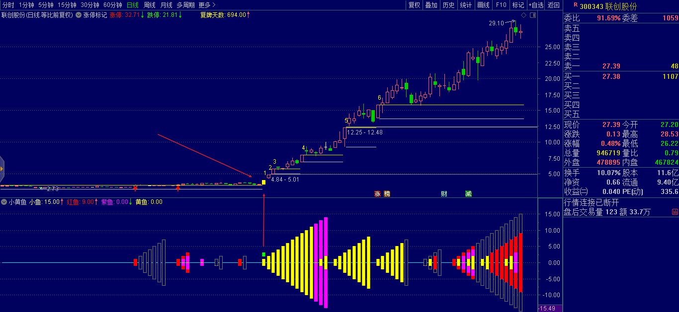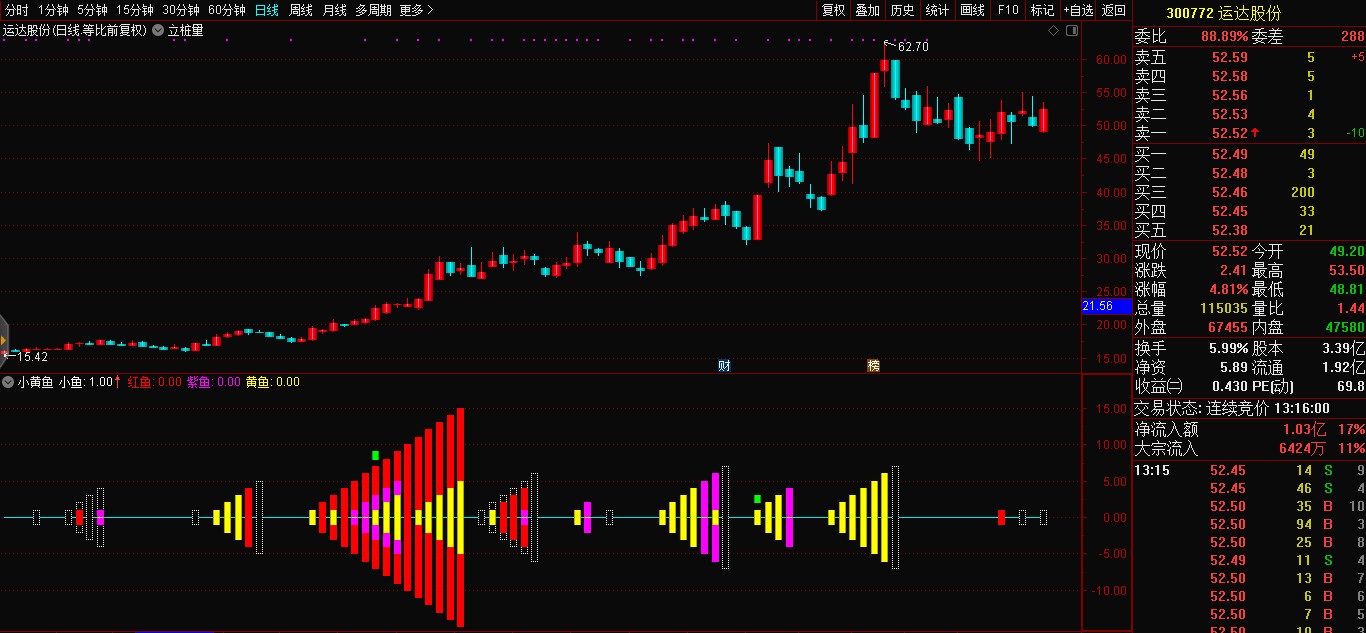 小黄鱼指标包含主图(涨停标记,复盘时间和市场相关性,源码)、副图、选股和引用指标、以及分时主图和波段主图。小黄鱼指标没有未来函数,及时函数,副图以玉色方块为选股器信号。享受免费升级,指标盘中非涨停预警,尾选均可。该指标捕捉了黄鱼在最强和快速提升阶段的形态表现。用“小黄鱼”、“大黄鱼”肥美的鱼身,满满的溢价滋补你的账户。