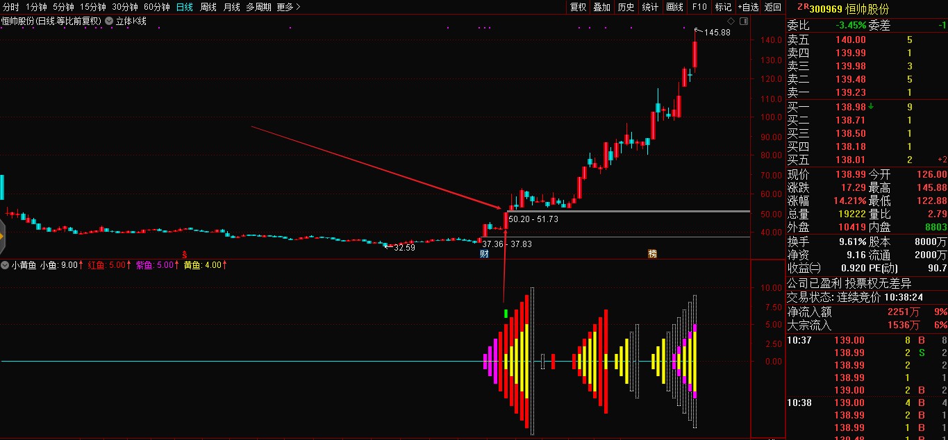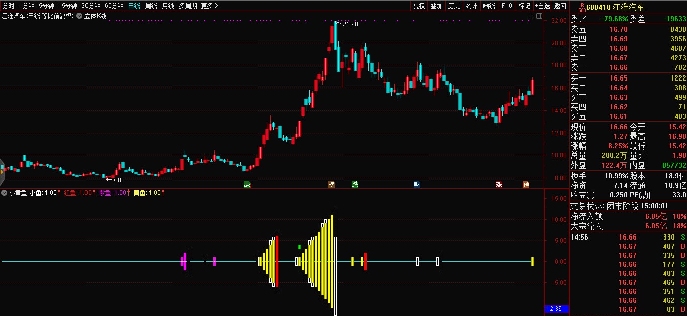 以小见大本指标《小黄鱼》,引以意捕捉最强拉升段、快速拉升段用黄鱼的形态表现。本指标也有“小黄鱼”、“大黄鱼”肥美的鱼身,满满的溢价滋补你的账户。