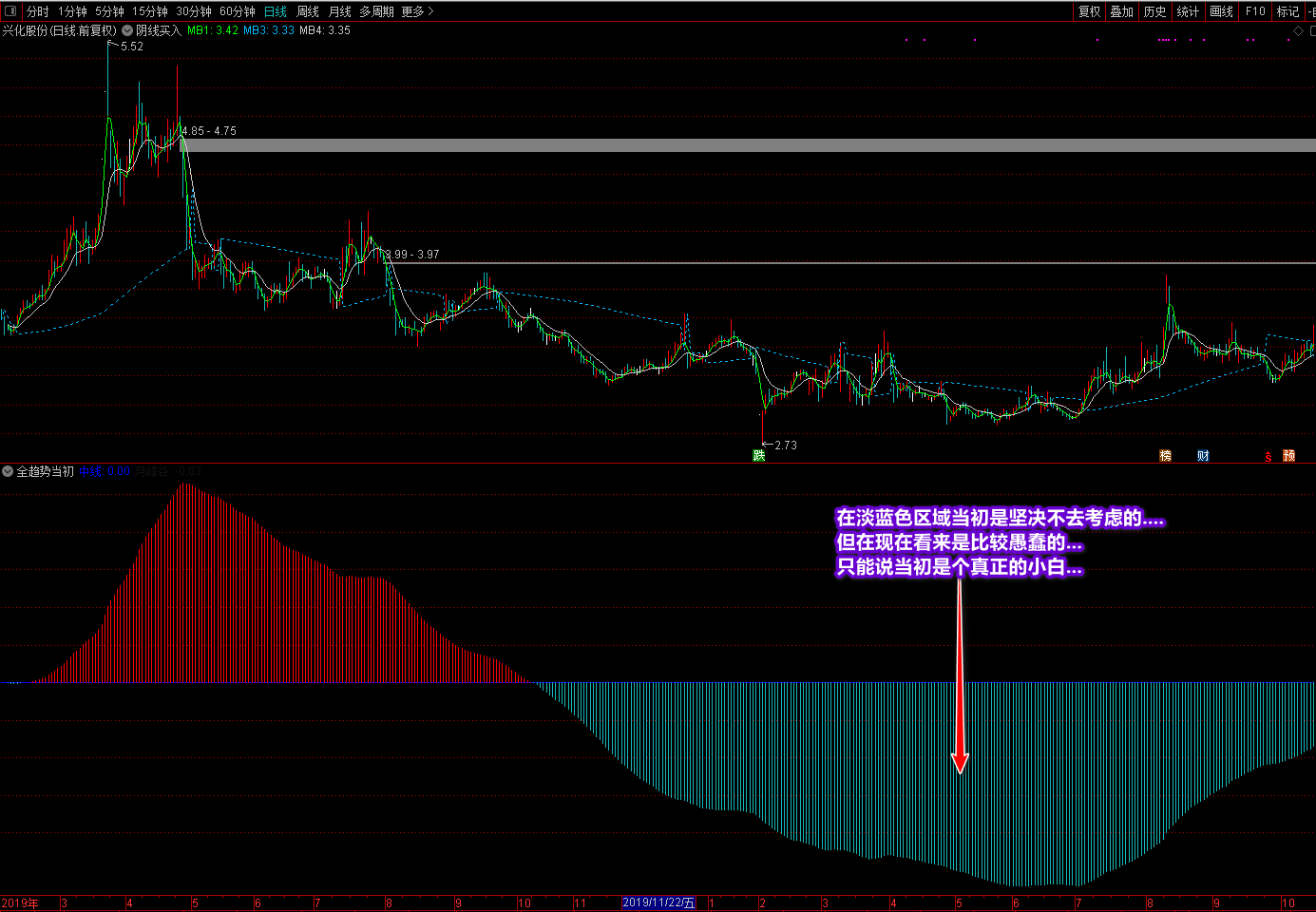 通过这个指标,你会发现牛市离我们有多远,我们的市场目前在哪里。那么,我们就可以通过60分钟线或者5分钟线知道明天大盘是涨是跌,什么时候该清仓休整,什么时候该收割,甚至可以通过1分钟线明确做T,这比看分时图要快。