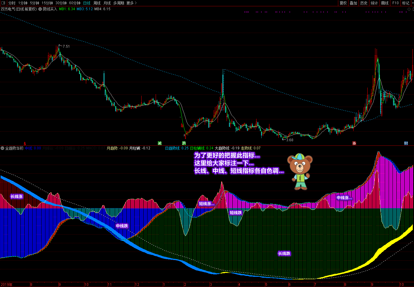 想订阅的同学仔细看截图,关注大中小趋势之间的互动合作。只要你先把握大趋势,再做中趋势,然后利用空头趋势由低向高移动,就会有不错的回报。当你看到长期趋势短期下跌时,不要觉得指标不准确或有问题。你要知道,中长期趋势赚钱的好股票都是几天涨跌,但你看好趋势,绝对不会亏钱。当然,如果你想成为一个激进的人,那么,看看60分钟以下的分时线,有时间我会去做,但我没有像各位专客那样可以天天盯盘……请各位同学记住一点,只要大趋势形成了,即使某一天突然跌停你只要看准不是意外那么,它总是会还给你的,没有特殊原因就是庄家想甩开你,只要你下以后的筹码他就全部吃掉,等待后面的拉升,只要你站在庄家角度考虑问题,那么你就成功一大半了。因为庄家是站在你的对立面的,不去考虑对手那么你总是被对手所坑害。在上升趋势中,如果昨天大涨,如果你能看懂60分钟线,并分析出了它的上涨位置,我会准确的加仓或减仓,但根据60分钟线和5分钟线我也可以分析出明天绝对要卖出或看涨势来操作。所以趋势形成后不要在乎调整时的下跌,这是很正常的庄家行走路线。有些同学可能不知道,一支个股不管是在上升通道中还是在下降通道中,是有个万有引力作用的,也就是说,股票也是一样,如果一支个股以60天线作为地球表面,5日线作为一个抛物,那么5分钟线总是离不开地球的引力,到了一定高度自然会落回地面。跌得太多的股票就像落地的球,总会被反弹,但力度是另一回事。所以我们要多关注学习,多了解自然,多支持,你就明白了。我真心希望有一天,同学们会有人来指导我,让他们一起学习,一起提高,带更多的同学走出困境,一起获利。这是我一直希望的,或者说我一直希望大家进步和提高!