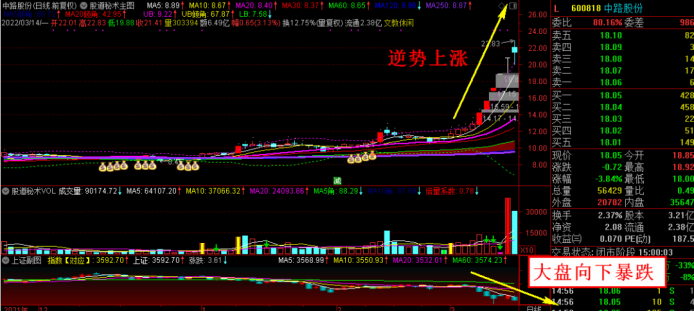 【中路股份】的流通盘小,总才2个亿,其实实际流通盘也就1个亿左右(除去持股5%以上的大股东)。流通盘小,庄家是很容易控盘的,即使大盘大跌,